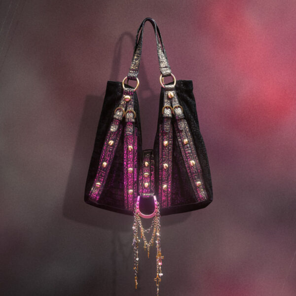 Please note that our adorned upcycled handbags are all enhanced with pieces including upcycled, pre-owned and deadstock items. Even though all of our handbags are in good condition, these handbags have all lived a life before, so please be aware of imperfections.